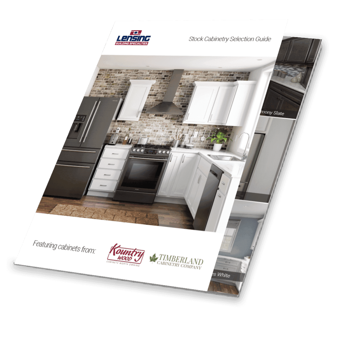 The Lensing Stock Cabinetry Guide is designed to show all the stocked items for cabinetry, cabinetry accessories, vanity tops and hardware. Previously, we issued our stock information for Kountry Wood and Timberland Cabinetry in two separate brochures. The new book combines both stock programs to make it easier to find stocking information and compare the two cabinetry lines.